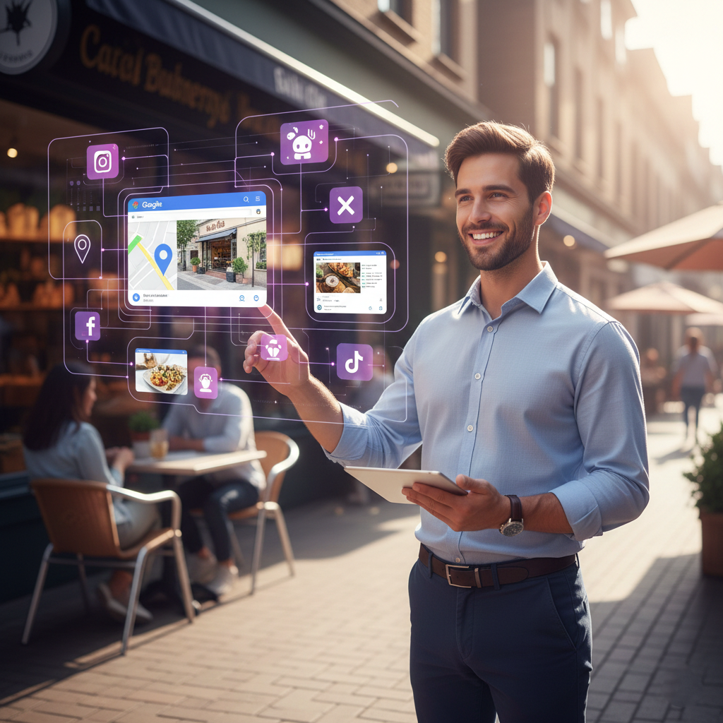 Restaurants, brasseries, fast-foods. Réservations en ligne, visibilité locale, réseaux sociaux automatisés, clientèle multipliée.